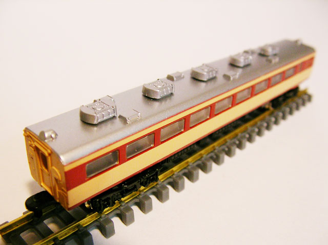 天井に配置されたクーラーは別パーツ。 たまに斜めになっているのはご愛嬌(笑) 自分で動かして直しましょう。 グリーン車のマークも キレイにプリントされています。