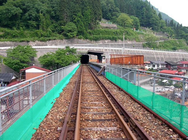 終点の奥飛騨温泉口駅が見えてきました〜。 |