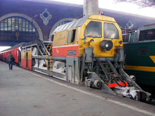 モスクワ カザンスキー駅構内で作業している除雪列車 入線後ディーセル機関車で後進