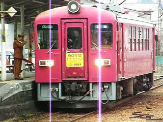 若柳駅へ向かいKD951が走る。しばし静寂の後、腕木式信号機がガシャンと作動