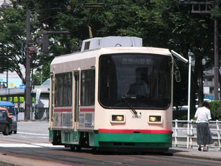 富山駅前〜地鉄ビル前間 すれ違うデ8000形8005号車と8004号車