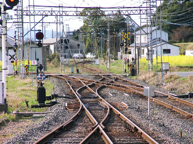 ここは一畑電車で唯一の 「スイッチバック駅」なのです。 ここにやってくる電車は進行方向を変えて 違う方向へ走っていくのです。