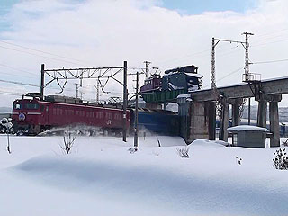 奥羽本線下り 大鰐温泉〜石川間 EF81 138牽引下り「あけぼの」最終列車 弘南鉄道のラッセル車「キ105」と夢の立体交差!